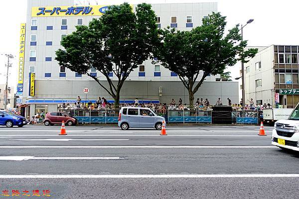 睡魔祭的第一天,從下午3點開始,睡魔祭付費觀覽席搭建完成,也才逐漸可以見到在睡魔祭遊行通過的奧州街道兩旁,開始有以膠帶、矮凳劃地為王,佔取免費位置的景象,即使沿路的商家,也才開始將椅子搬出店外,幫客人站取好位置的狀況。基本上,只要用形式上可以佔位的東西往地上一擺,那就表示「那是我的位置,閒雜人等勿入」的意思,也沒有人會將這些東西搬開,甚至對佔位者怒目相向。睡魔祭,東北第一大火祭,青森人卻不會為觀光客沿著街道兩旁的佔位行為火大,因為,他們清楚的知道,睡魔祭是大家歡樂的日子,一年就這麼幾天,而且遊行的路線很長,佔個小位置,計較甚麼?