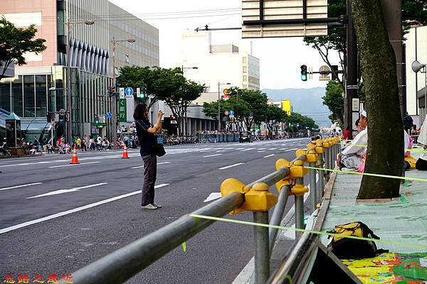 ↑下午六點,人群逐漸聚集睡魔祭遊行所經的奧洲街道,交通警察開始以三角錐淨空道路