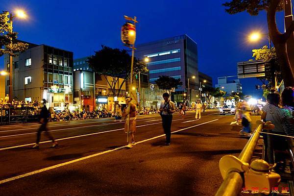 晚上7點,道路完全淨空,道路兩旁付費的、佔位的都已經擠滿了人,所有的人引頸企盼著遊行的前導隊伍此刻緩慢地由遠處緩緩前進,隨著太鼓及囃子團的笛聲,拉開2016青森睡魔季的序幕。