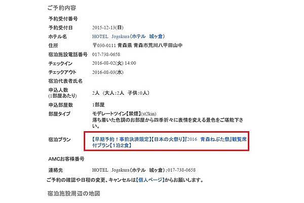 4.請入住的旅館代訂:青森某些飯店旅館會幫客人代訂觀覽席的座位;有些旅館在住房廣告中就會載明可以幫客人代訂入住當晚睡魔祭觀覽席的座位,那就直接訂有這種服務的房間就可以了。如果預訂的飯店沒有說明有這種服務也不必擔心,當預定飯店時,可以用e-mail詢問飯店可否代訂觀覽席座位。例如Look2up 2016年於8月2日入住八甲山田山的城倉旅館,飯店便有附睡魔祭觀覽席的course可訂。