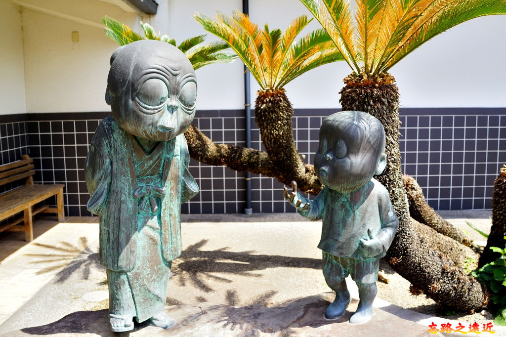 參觀「水木茂紀念館」先別急著買票入內,先與小廣場上鬼太郎與眼球老爹的青銅雕像照張相吧!