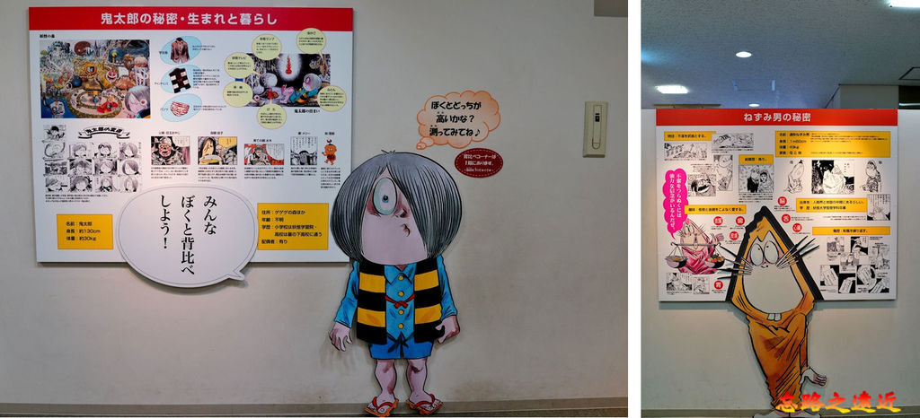 「水木茂漫畫世界」大廳另一個受歡迎的便是牆面上一面面鬼太郎故事主角們的「秘密」,例如,你知道鬼太郎的身高體體重嗎? 他是怎麼出生的? 他的制服穿了幾百年會不會破呢? 他的背心是什麼製造的呢? 你能說出鬼太郎的10大超能力嗎?...