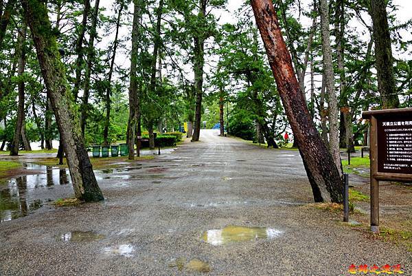 所謂「天橋立公園」(又稱「風致公園」)就是由天橋立端的迴旋橋開始,橫越「文殊水道」至松林沙洲,沿著松林沙洲至宮津地區,再往前上至「傘松公園」的整片區域;所以,要完整的遊畢「天橋立公園」,除了搭纜車上下傘松公園之外,這一段松林沙洲非去不可!