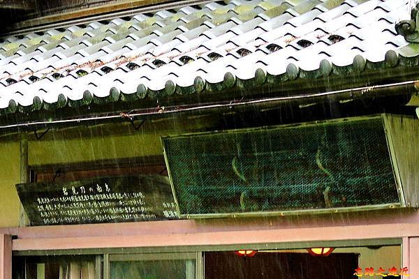 在岩見重太郎為父親報仇之處,一般遊客很容易忽略了旁邊的房子,這棟房子以前是一所茶屋-「磯清水亭」,現在出租當辦公處所,但很少開門。如果抬頭望這棟房屋的屋簷,可以發現門上屋簷下方有一塊「岩見刀之由來」的說明牌,說明牌旁邊有一對長短武士刀,據說岩見重太郎為父報仇後,報仇用的刀一直被存放在前方的「天橋立神社」,但是後來因戰亂而不知去向,所以「磯清水亭」的主人便以木頭重製了這對刀,並安置在門上的屋簷處,經過時別忘了抬頭看看。