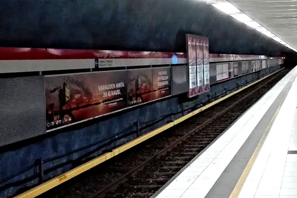 赫爾辛基的地鐵站通常需要自路邊的地下通道進站,搭乘長電梯往下,地面層可以找到售票的自動售票機及R-Kiosks便利商店購票進站。因為地鐵站行駛距離短,都在赫爾辛基A、B瞭交通區間行駛,所以票價都是2.8歐元。