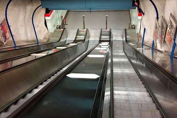 ↑ 赫爾辛基地鐵內搭長電梯至站內搭車