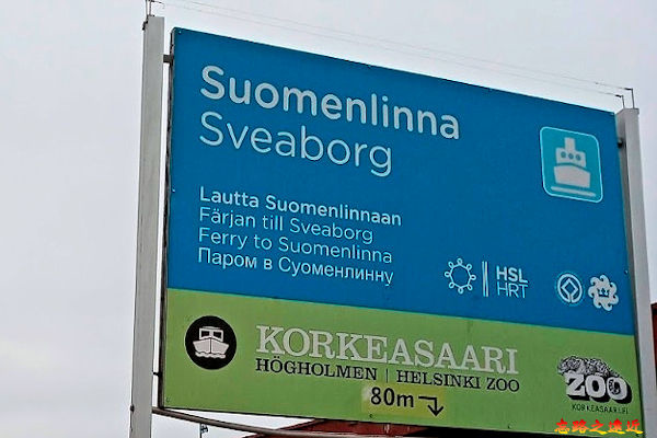 ↑「碼頭市集廣場」北側的往「芬蘭堡」的大招牌