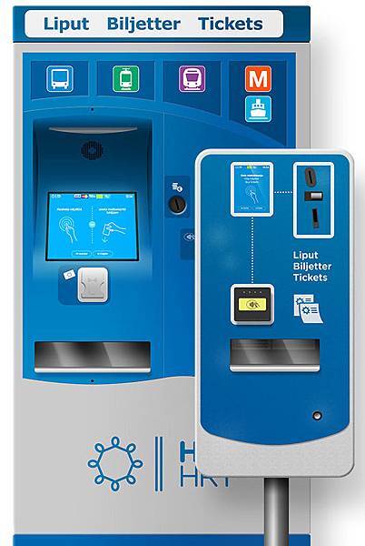 主要位於赫爾辛基地鐵站、火車站內,可以用以購賣以上各種實體票券,也可以為票卡加值,這種售票機可以投幣、紙鈔及信用卡購票。