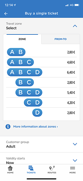 一般而言,赫爾辛基的重要景點都在A、B 兩區,比較遠的萬塔機場則在C區,由萬塔國際機場前往A、B區 (如中央車站),就必須購買涵蓋A、B、C三區的票。