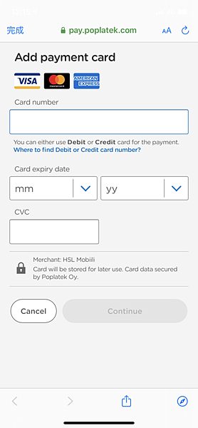 同時,選擇付款方式"Payment method",只要是外國人,都是選擇信用卡,台灣常用的信用卡都可使用。