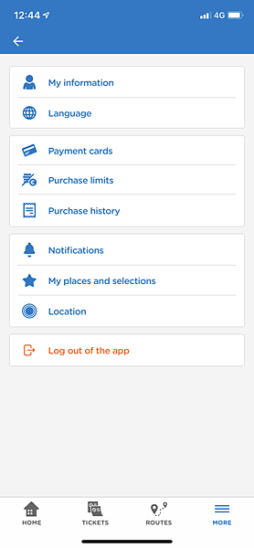 (8) 建立HSL:帳戶進入下面4選項中的"MORE",可以設定所有個人資訊,也可以在"Settings"中開一個HSL帳號(HSL Account),同時加入一張常用信用卡,以後使用各種交通工具購票時,就直接從中扣款。