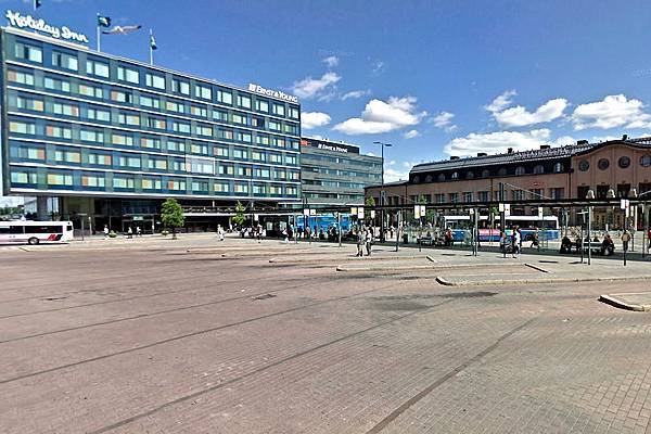 ↑ 赫爾辛基中央火車站前的Eliel Square公車站搭「Finair City Bus」 (摘自 Google Map 位置)
