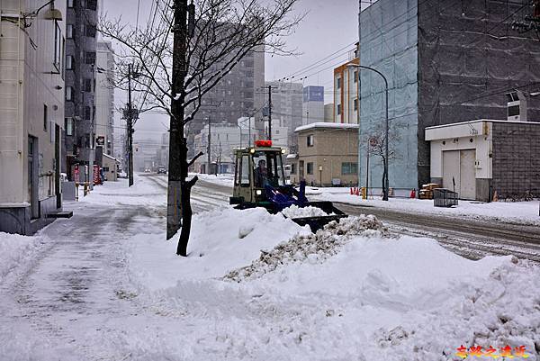 ↑ 沿著南二條通直行,頂著大雪、踏著5公分厚的雪路直行