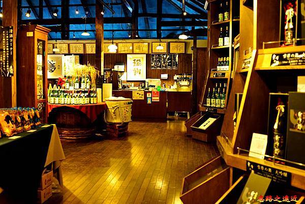 除了以上介紹的展示,「千歲鶴酒博物館」便是販賣自產的產品,商店櫃台位在底端的角落,此處可以試飲大部分「日本清酒株式會社」所出產的酒品。櫃台後方牆上掛滿了整排的受賞獎狀。由於當日下著大雪,所以店內只有Look2up一人,櫃台服務人員熱心的介紹千歲鶴酒,一一的讓Look2up試飲,幾杯下肚有點微醺。