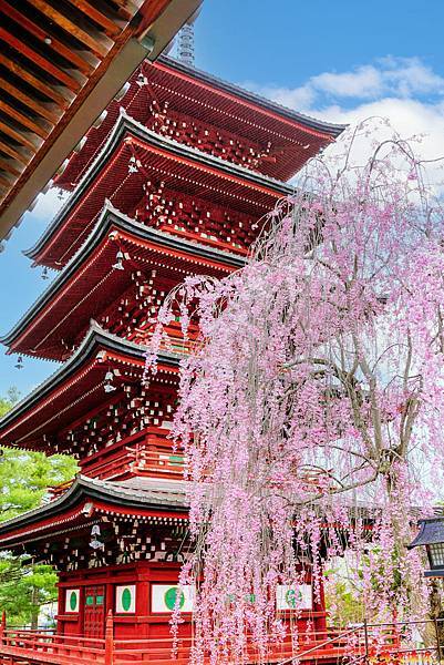 ↑ 常勝院五重塔,粉櫻前任一角度欣賞都美