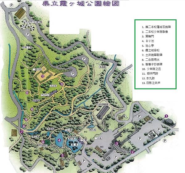 路線:二本松站>>二本松少年隊雕像>>箕輪門>>二本松庭園 (洗心亭、傘松)>>少年隊之丘>>本丸跡